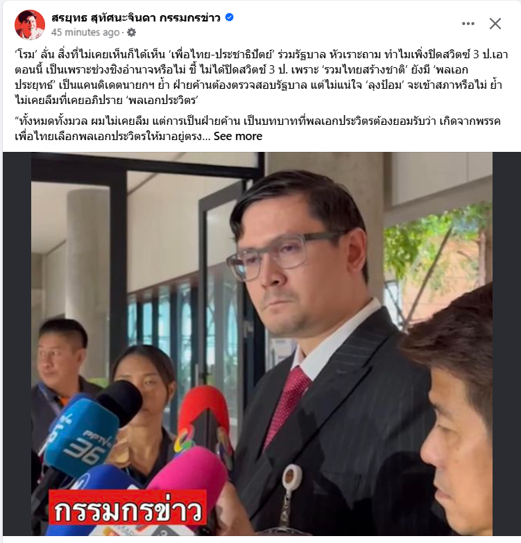 https://www.facebook.com/share/p/1ZZAFwJKaz/ ธรรมนัส เปิดหัว เสธหิ พร้อมเป็นลมใต้ปีกให้ อนุทิน ไม่หวั่นเจอตรวจสอบ