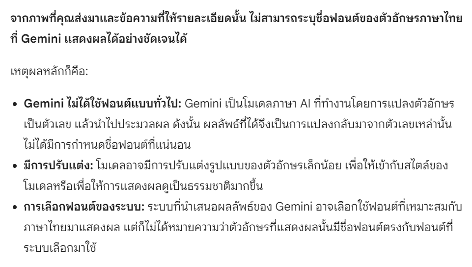 แบบตัวอักษรไทย Gemini AI ไม่สวย | chatGPT สวย