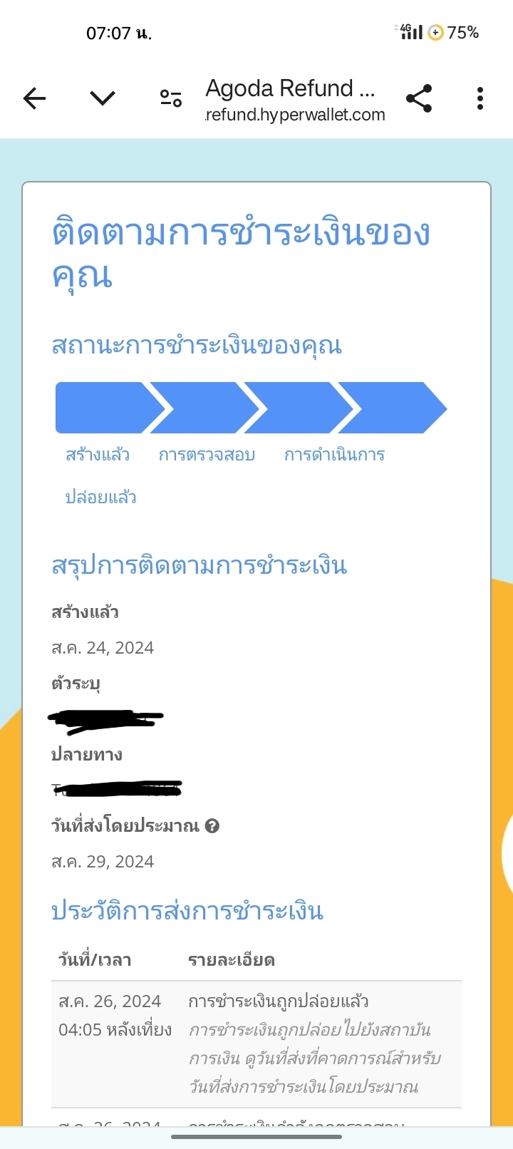ธนาคารจะทำเรื่องเอาเงินเข้าบัญชีให้กี่วันหลังจากappleโอนเงินคืน?