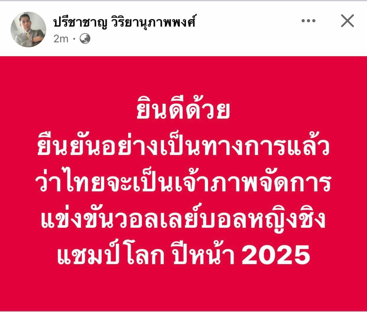 ข่าววงใน ยืนยันอย่างเป็นทางการ ไทยจัดชิงแชมป์โลก 2025😆🇹🇭