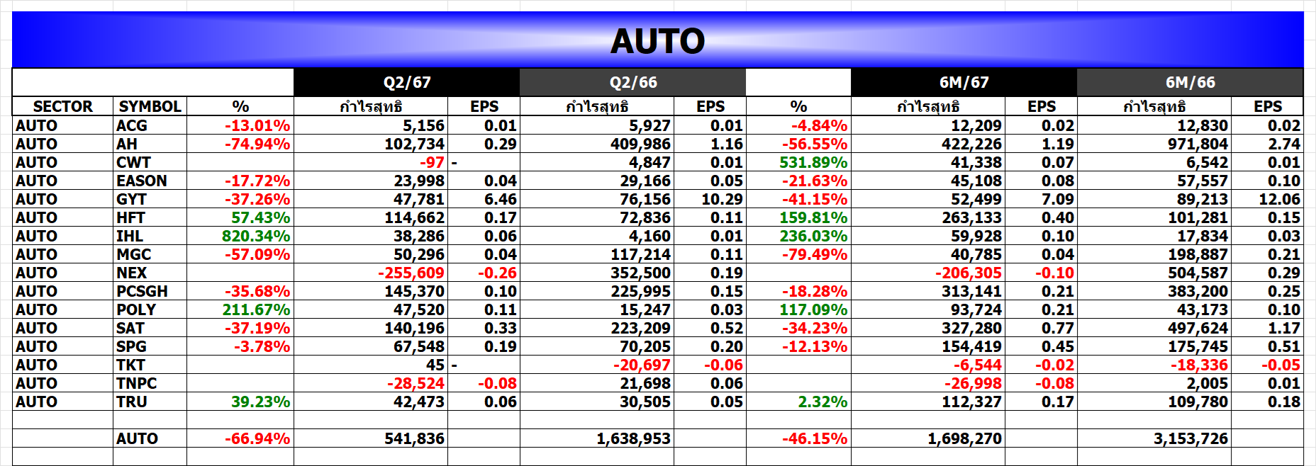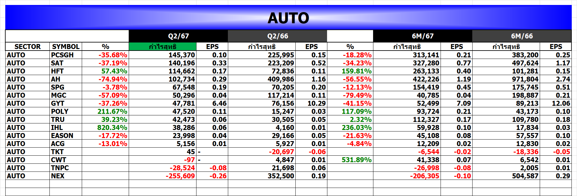 ⭐สรุปผลการดำเงินงาน Q2/2567 กลุ่ม ยานยนต์ (AUTO)