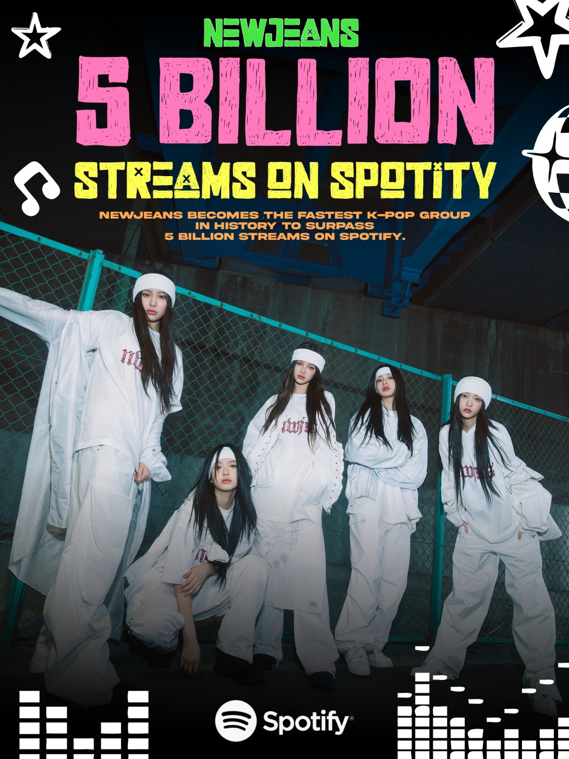 Congratulations! 💙 NewJeans มียอดสตรีมทะลุ 5 พันล้านสตรีมบน Spotify เร็วสุดในประวัติศาสตร์ของ K-pop Group 🎉