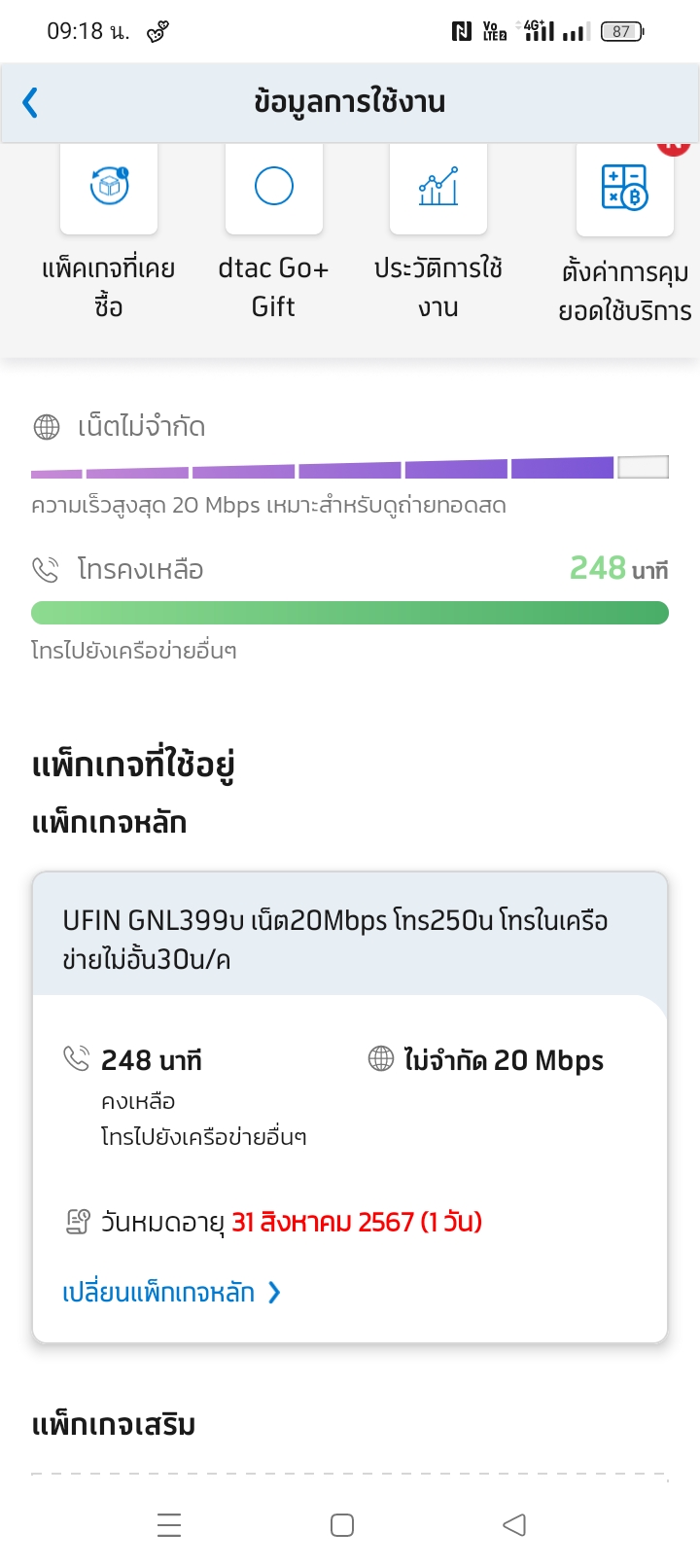 แพ็กเกจรายเดือน Dtac จะหมดอายุ