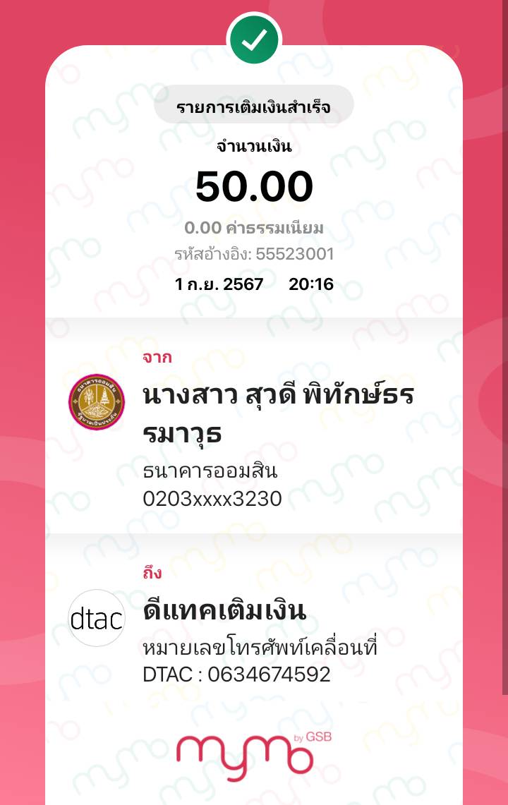 เติมเงินทรูมูฟ ผิดเบอร์คะ จากแอปธนาคารออมสิน