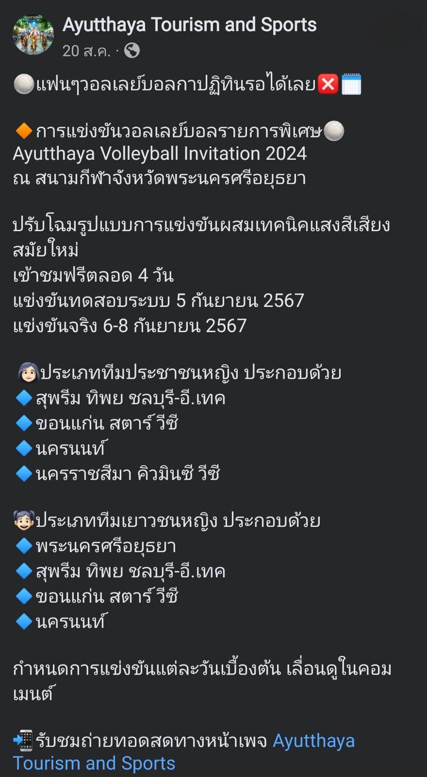 Ayutthaya volleyball invitation 2024 5-8 กันยายน
