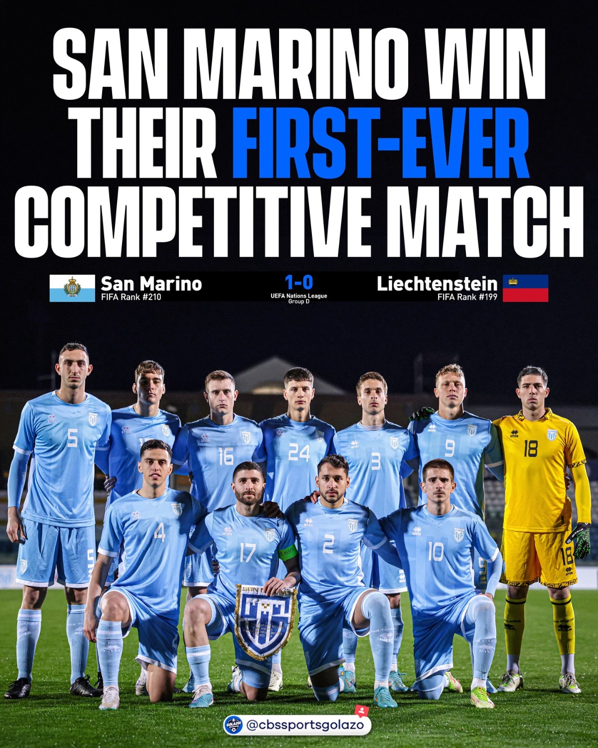 และเมื่อคืนนี้ ชัยชนะในเกมทางการครั้งแรกในประวัติศาตร์ชาติ หลังเฉือนชนะ ลิกเตนสไตน์ ในศึก ยูฟ่า เนชันส์ ลีก ไปด้วยสกอร์ 1-0 จากประตูของ นิคโก เซนโซลี แข้งวัย 19 ปี ที่ทำได้ในนาทีที่ 53