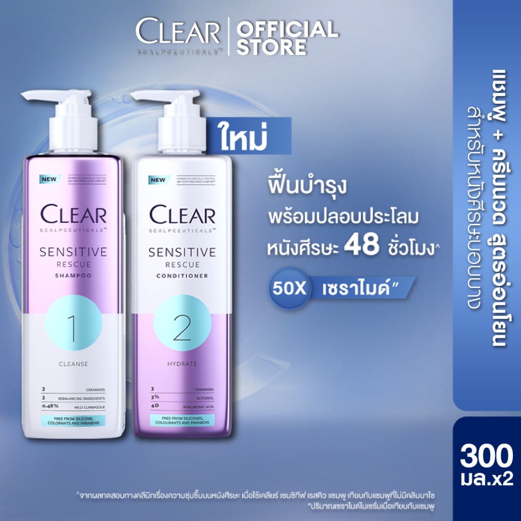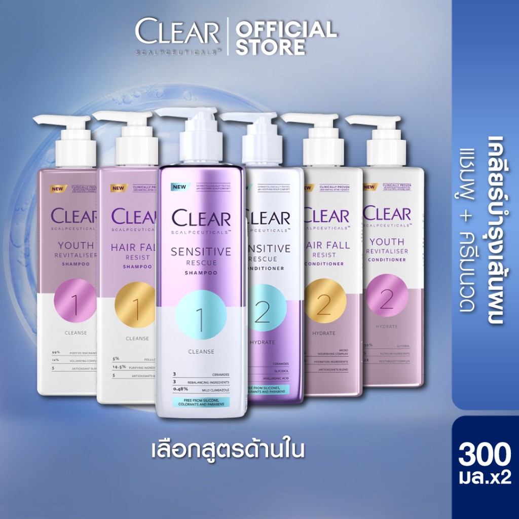 👩👩 CLEAR แชมพูลดผมร่วง ลดผมบาง เพิ่มวอลลุ่ม (สูตรลดผมร่วง ผมบาง เห็นผลจริงใน 14 วัน) แชมพู 300 มล. และ ครีมนวด 300 มล.