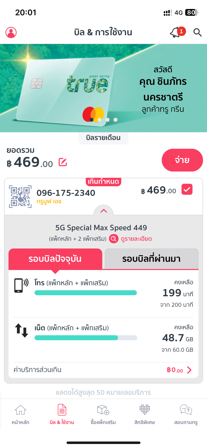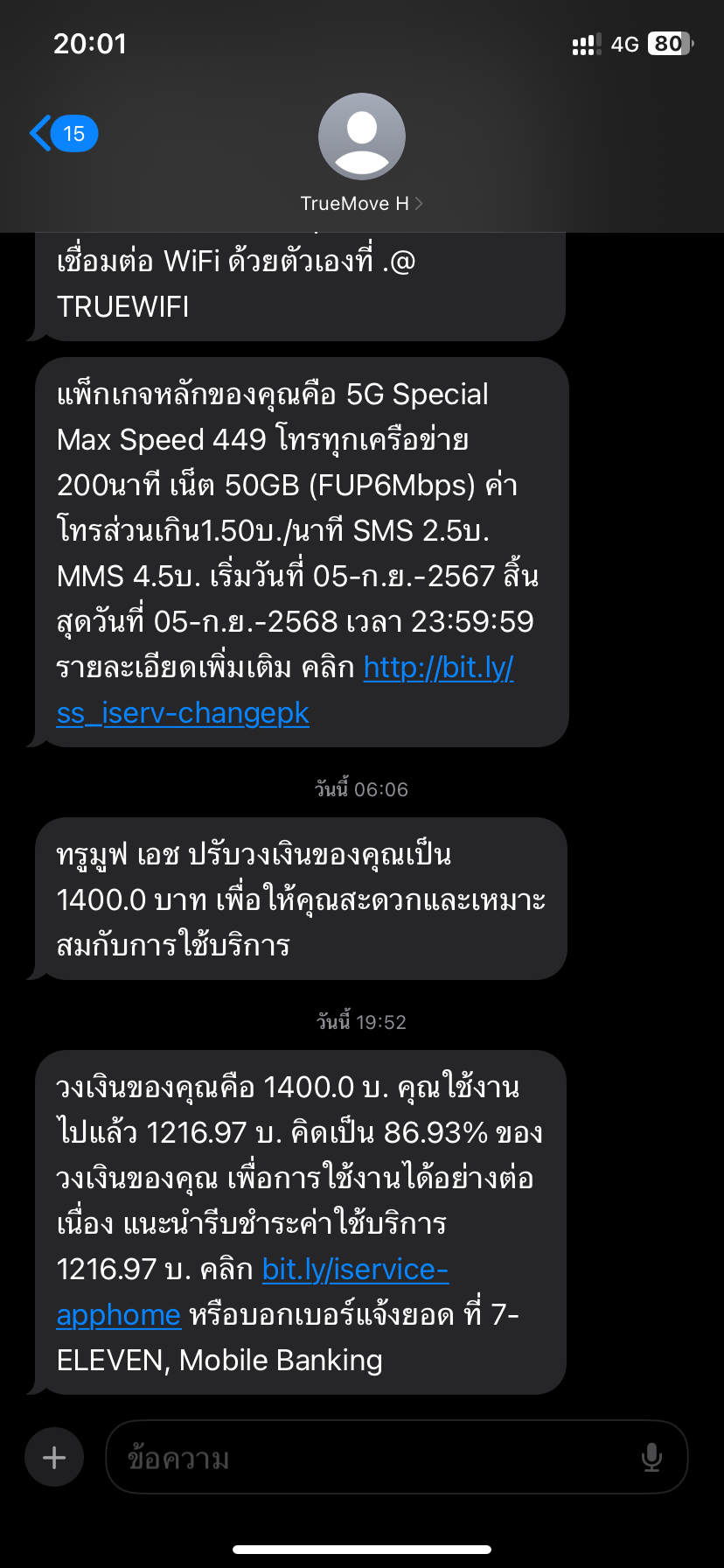 วงเงินค่าอินเตอร์เนรายเดือน 1,400 บาท ใช้ไป 469 บาท จู่ข้อความเข้าว่าใช้ไป 1,2xx บาท แล้ว ทรูมูฟอีกแล้ว