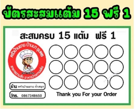 ●> อย่าลืมรับบัตรสะสมครบ 15 แก้ว รับฟรี 1 แก้ว จากครัวบ้านยาย ถ้ำสนุก บ้านนา ชุมพร ให้ผู้ซื้อได้สะสมแต้ม เพื่อแลกเครื่องดื่มฟรี ... สามารถสะสมแต้มผ่านทางหน้าร้านได้โดยการแสตมป์บัตรสะสมจากการเข้าใช้บริการให้ผู้ซื้อได้สะสมแต้ม เพื่อแลกเครื่องดื่มฟรี เป็นจำนวน 1 แก้วฟรี เมื่อสะสมครบ 15 แก้ว
