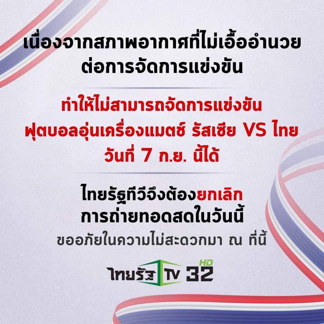 ยกเลิกการแข่งขันฟุตบอลระหว่างไทย-รัสเซีย