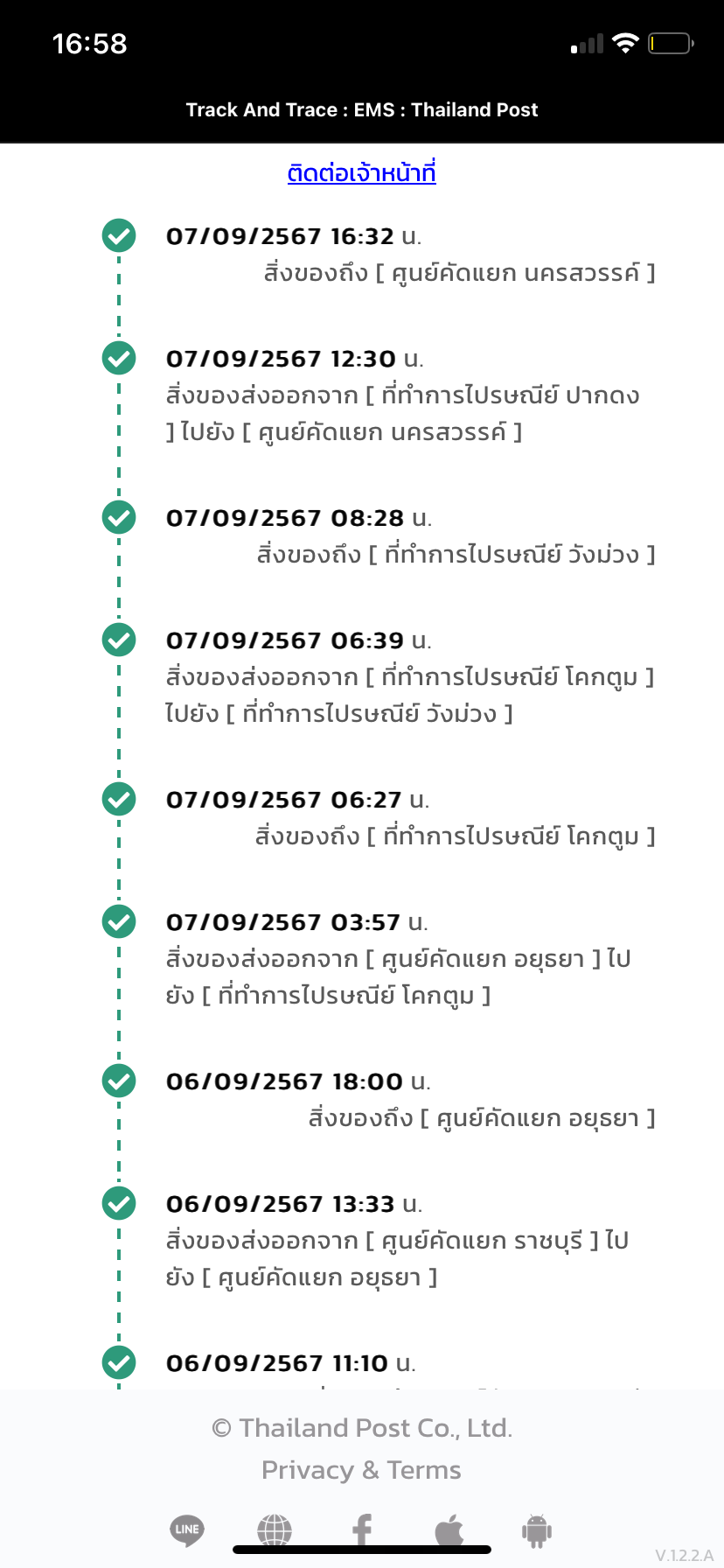 พัสดุจะไปถึงไหนหรอครับ ทำไมถึงวังม่วงแล้ว ยังไปนครสววค์ต่อ ??? EM083803904TH