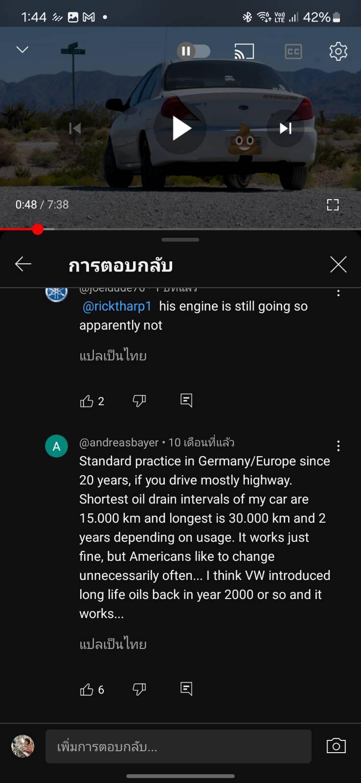 ไปเจอมา ในเยอรมนี เปลี่ยนน้ำมันเครื่องที่ 15000 กม ถึง 30000 กม ได้แล้ว เพราะอะไรน้ำมันเครื่องที่ไทยถึงทำไม่ได้