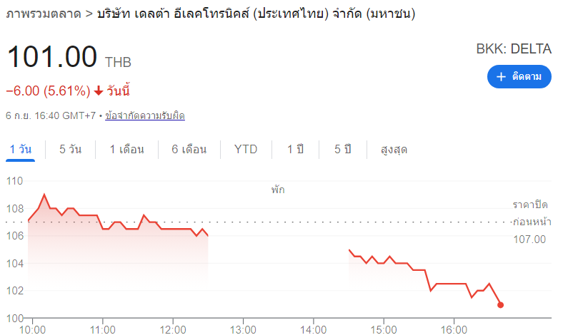 สำนักข่าวอินโฟเควสท์ (5 ก.พ. 2568)--DELTA ต้นภาคเช้าร่วงทันที 5.28% ลดลง 6.50 บาท มาอยู่ที่ 116.50 บาท มูลค่าการซื้อขาย 487.74 ล้า