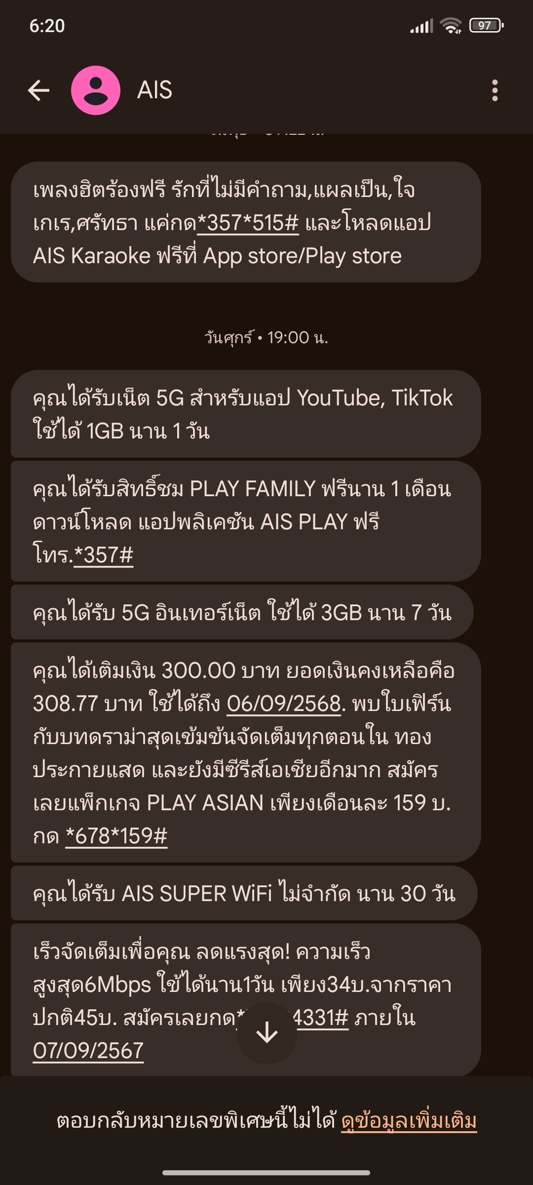 ขอทราบโปร SMS รายวัน และรายเดือนของ Ais ค่ะ