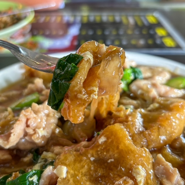 ร้านนี้จะเป็นสไตล์แบบบ้านๆ รสชาติแบบพื้นบ้านแถวนี้เลย ทั้งผัดไท หอยทอด ยิ่งถ้าเป็นราดหน้านี่ รสชาติแบบบ้านๆมาเลย แต่ก็อร่อยนะครับ ไม่ได้ปรุงแต่งแบบสไตล์จีนๆ แบบที่เห็นๆ กัน เป็นราดหน้า ผัดซีอิ๊วแบบอาหารตามสั่ง รสชาติมีซีอิ๊วดำนีดๆ น้ำใสเหนียวๆ แบบนั้น คงนึกกันออก และร้านนี้เค้าจะมีกะเพาะปลาด้วย จะทำเป็นผัดซีดิ๊วกะเพาะปลา หรือทอยทอดกะเพาะปลา หรืออยากทานแบบไหนก็บอกป้าแกได้ ป้าแกทำได้หมด