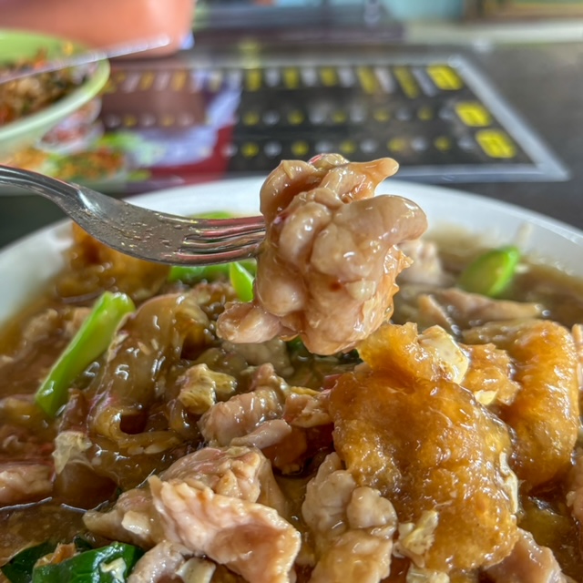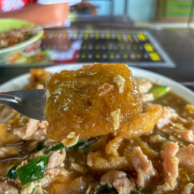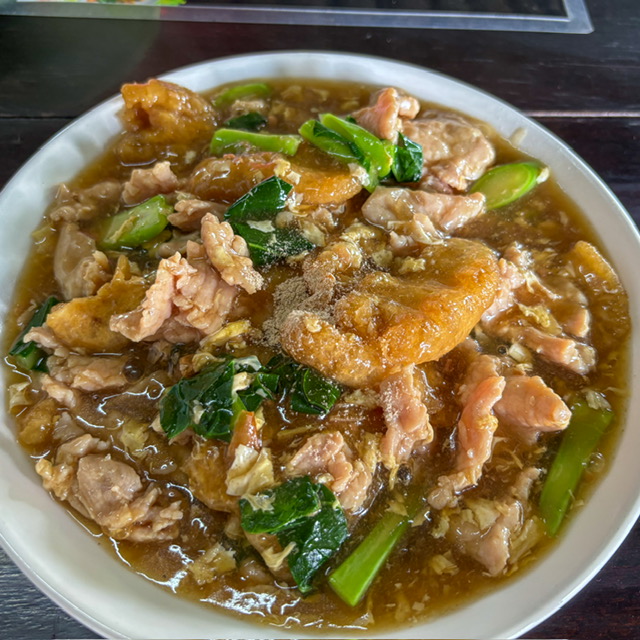 ราดหน้ากะเพาะปลา มาแบบไทยๆ เลย ไม่ใช่แบบจีนๆ ที่หลายๆ คนคุ้นเคย เป็นราดหน้าแบบที่คนที่บ้านทำให้กินแบบนั้น