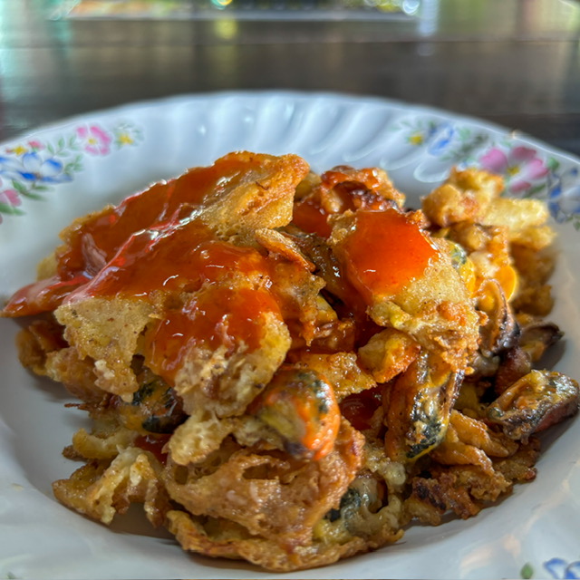 หอยทอดแบบไม่เอาผักเลย คนแถวนี้เค้าต้องใส่ซอสพริกศรีราชาด้วย