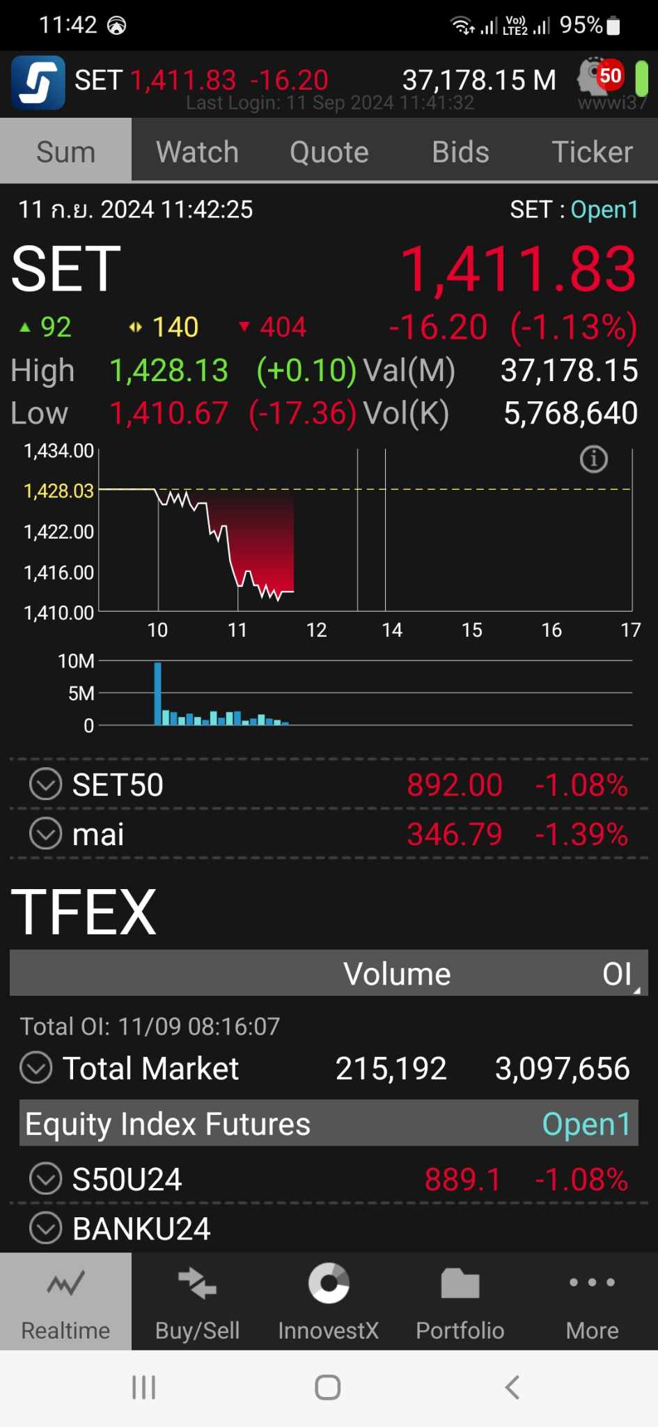 หลังจากที่ดัชนี SET Index -16 จุดในช่วงเช้า