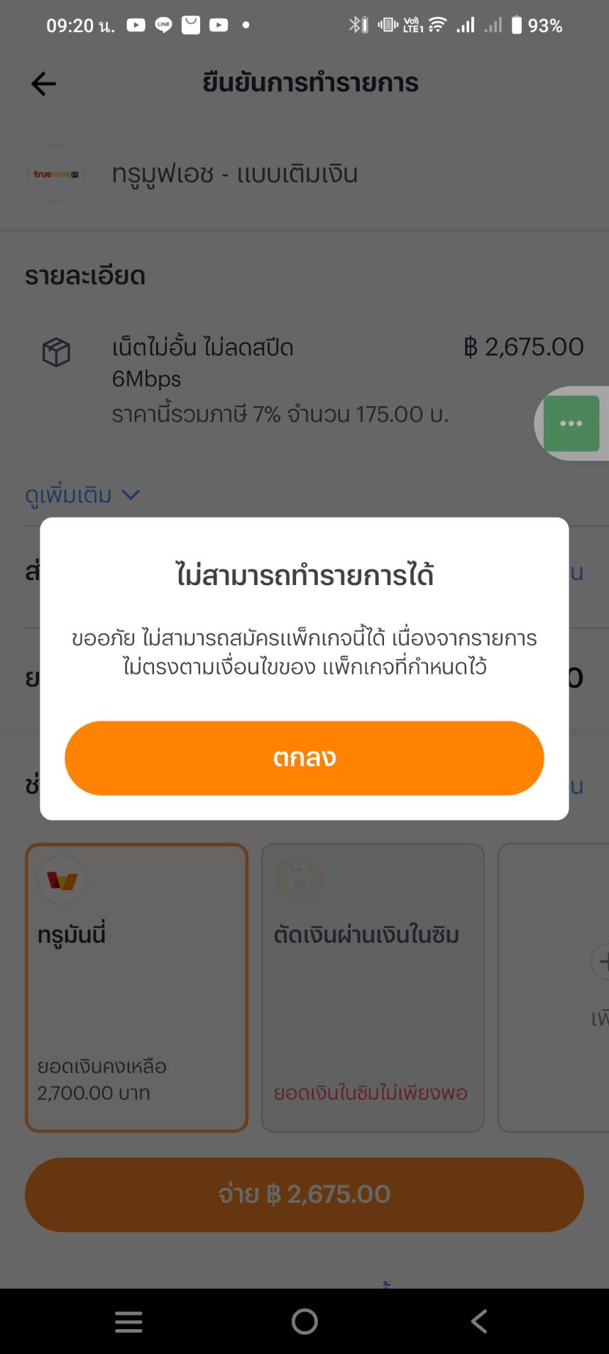 สมัครเพ็คเกจเน็ตทูรไม่ได้