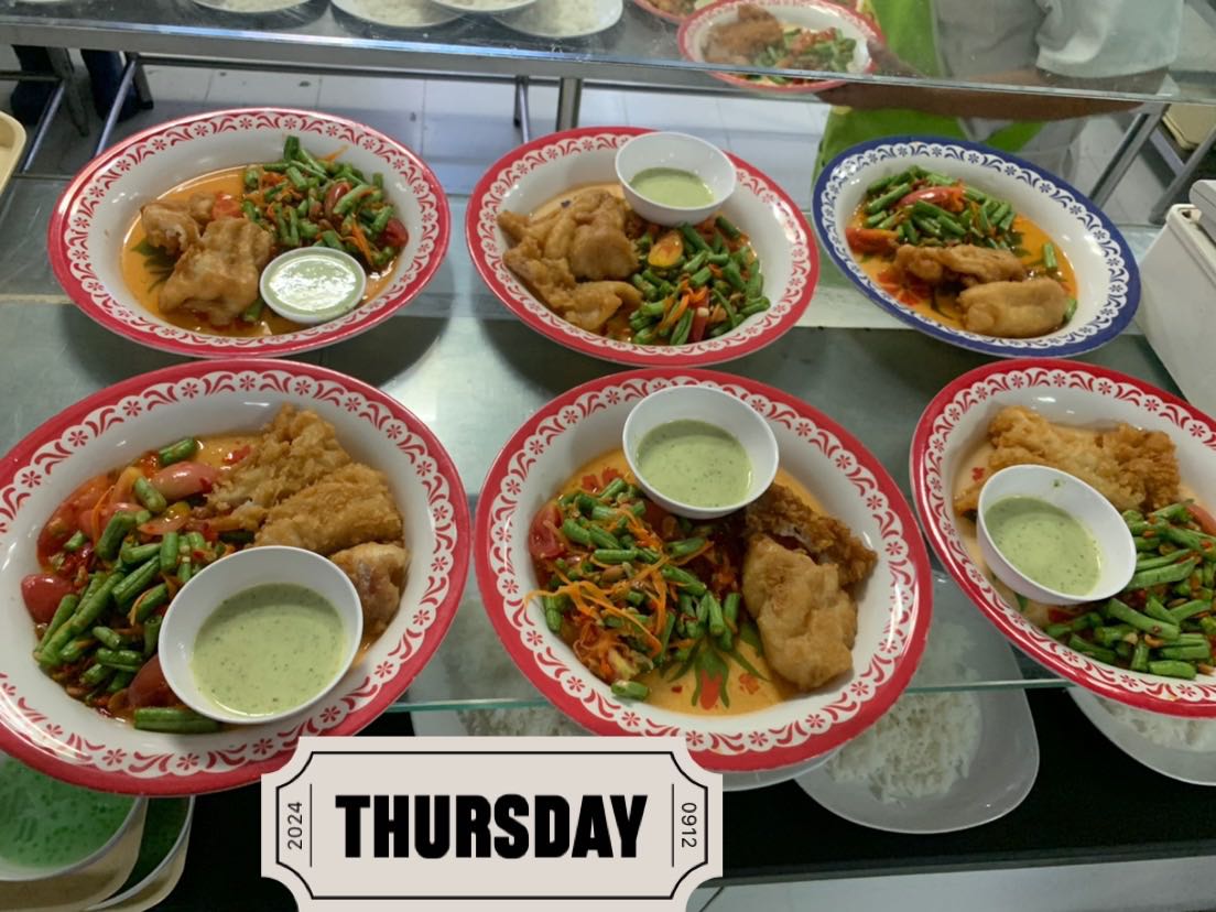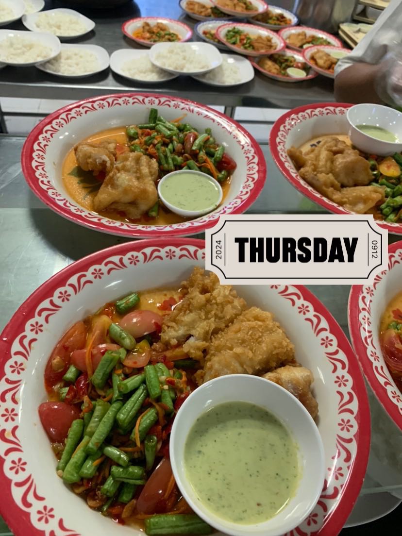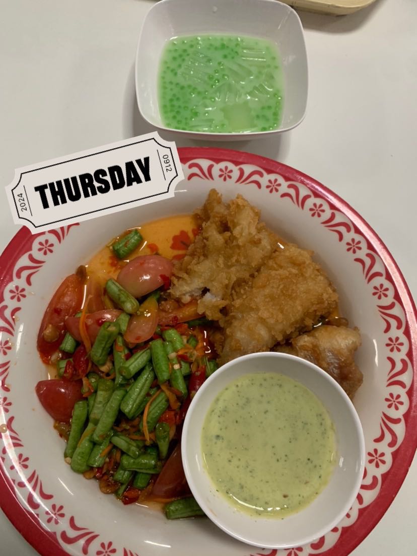 อาหารเที่ยงฟรีบริษัท: ปลาดอรี่ทอด&มายองเนสวาซาบิ&ตำถั่วร้า&สาคูวุ้นน้ำกะทิ