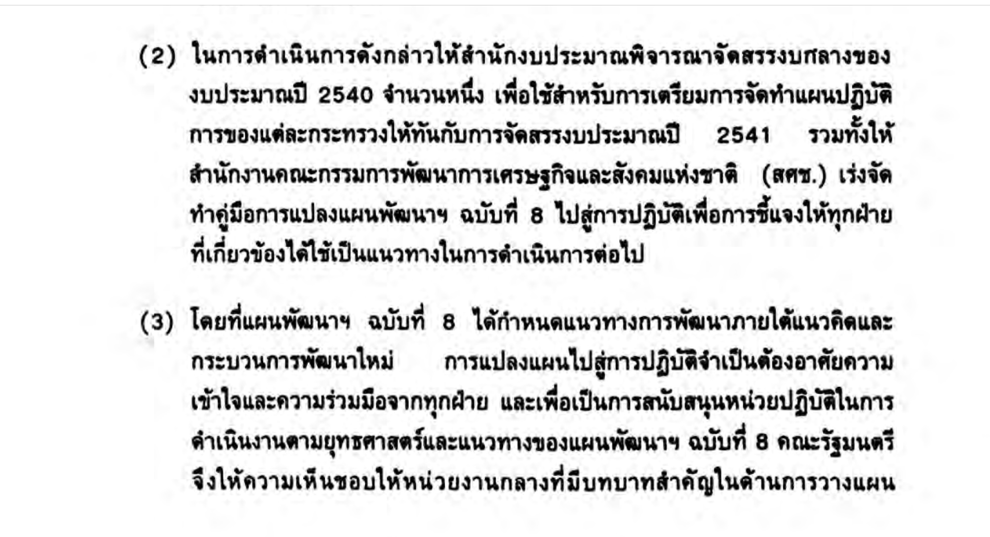 การแปลงแผนพัฒนาเศรษฐกิจและสังคมแห่งชาติ ฉบับที่ 8 ไปสู่การปฏิบัติ