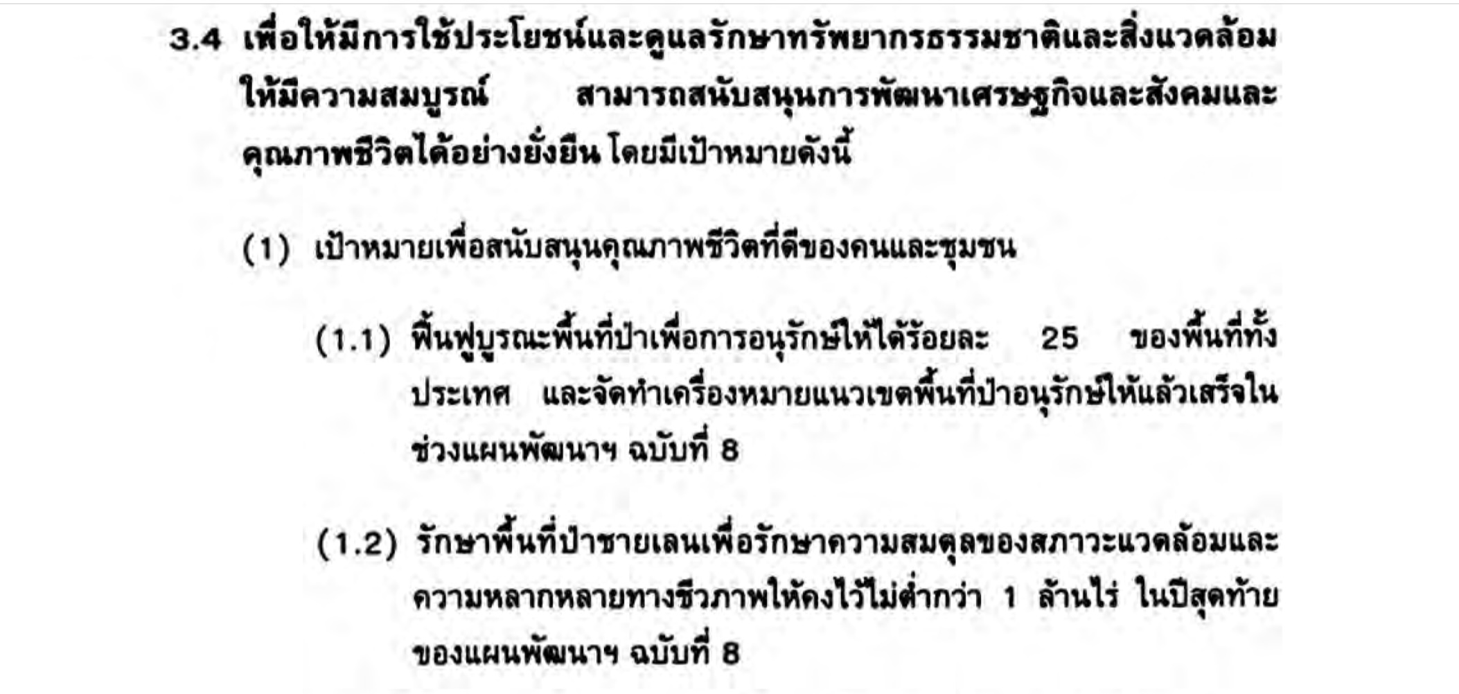 ผลงานคุณพ่อสุขวิช รังสิตพล:ด้านรักษาทรัพยากรธรรมชาติและสิ่งแวดล้อม ตามเป้าหมายของแผนพัฒนาเศรษฐกิจฯฉบับที่ 8