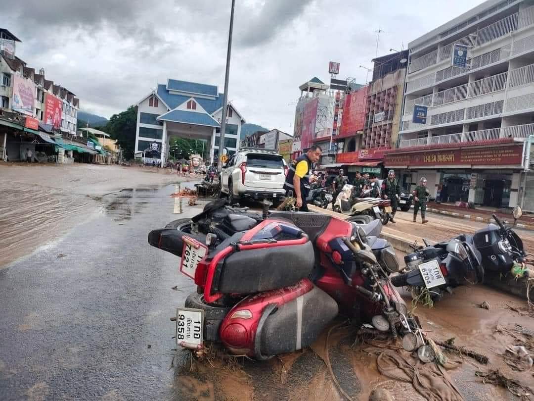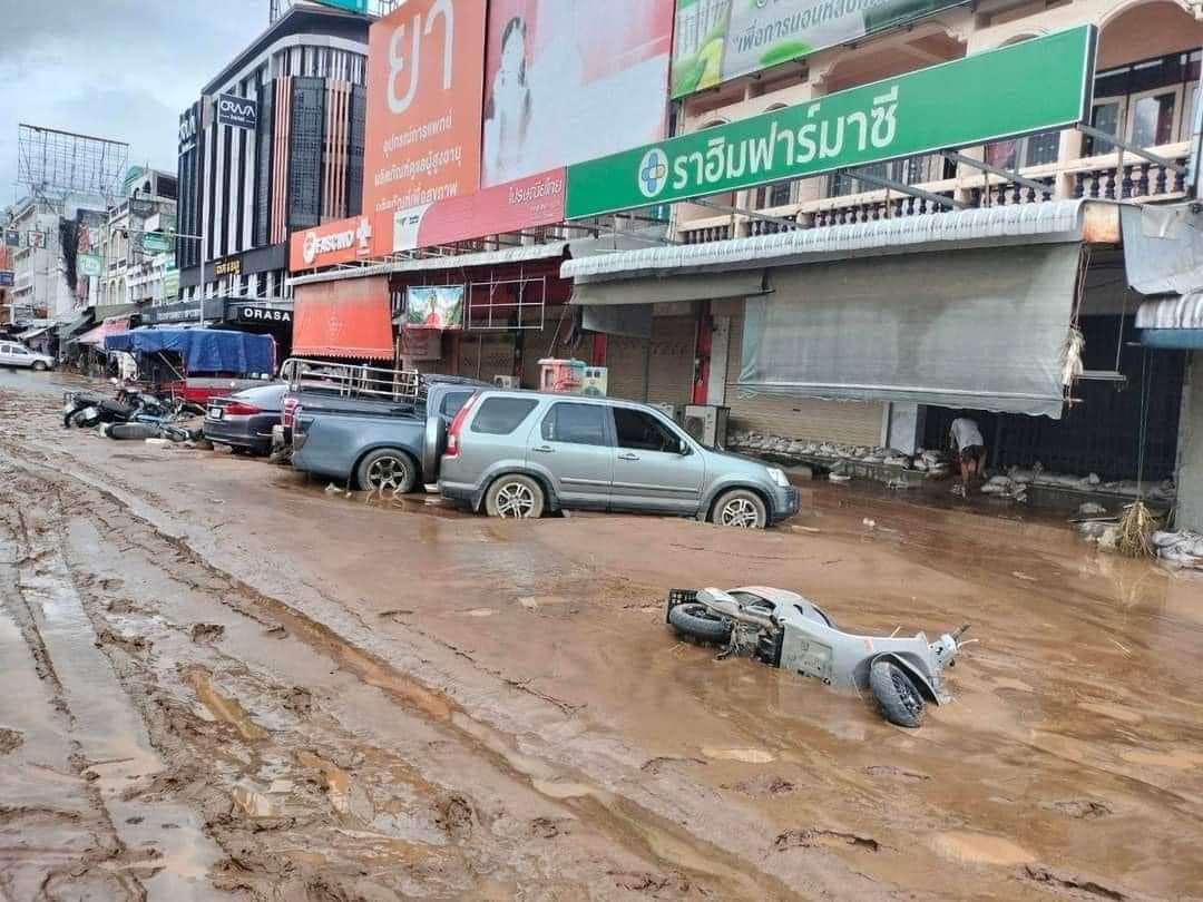 น้ำท่วมแม่สาย โคลนที่น้ำพามามันต้องเยอะขนาดไหนน้ำถึงปลายเป็นสีโคลนครับ มีเศษหิน ต้นไม้ลงมาด้วยมั้ย