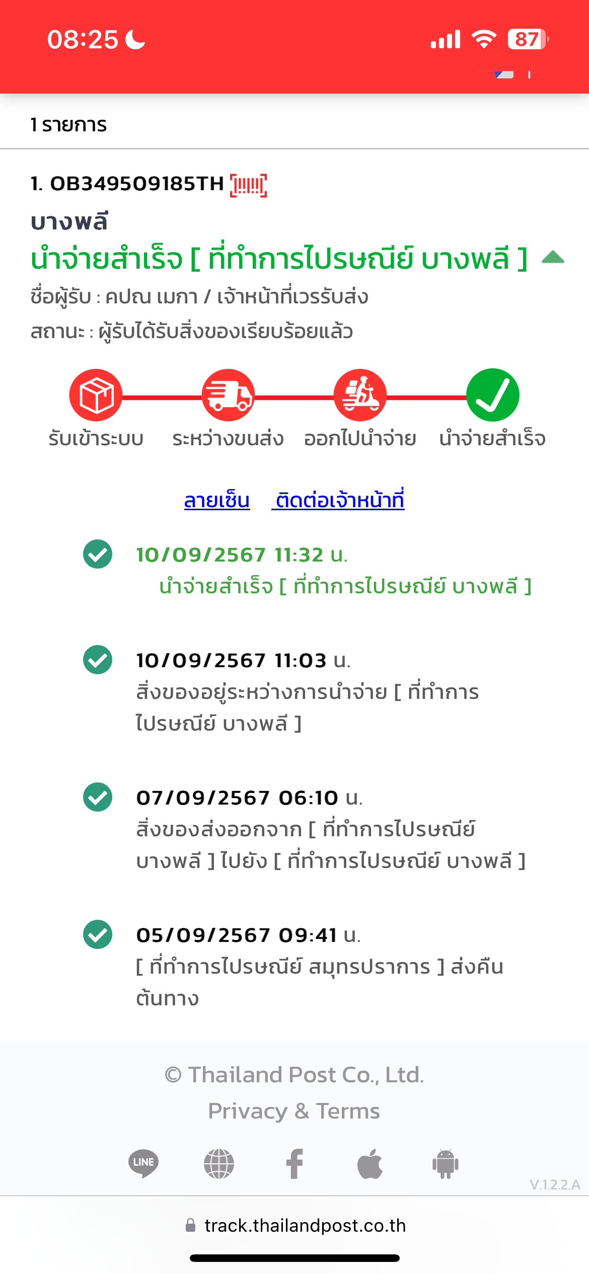 ไปรษณีย์ไทยขึ้นแบบนี้แต่ยังไม่ได้พัสดุค่ะ