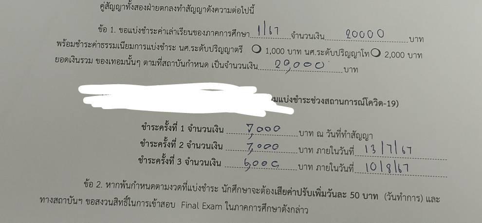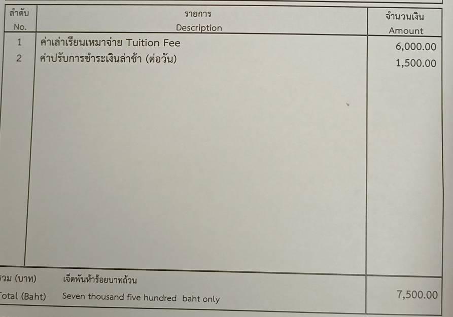 ไม่มีเงินจ่ายค่าเทอมในวันที่กำหนด โดนค่าปรับอีก 1,500 บาท