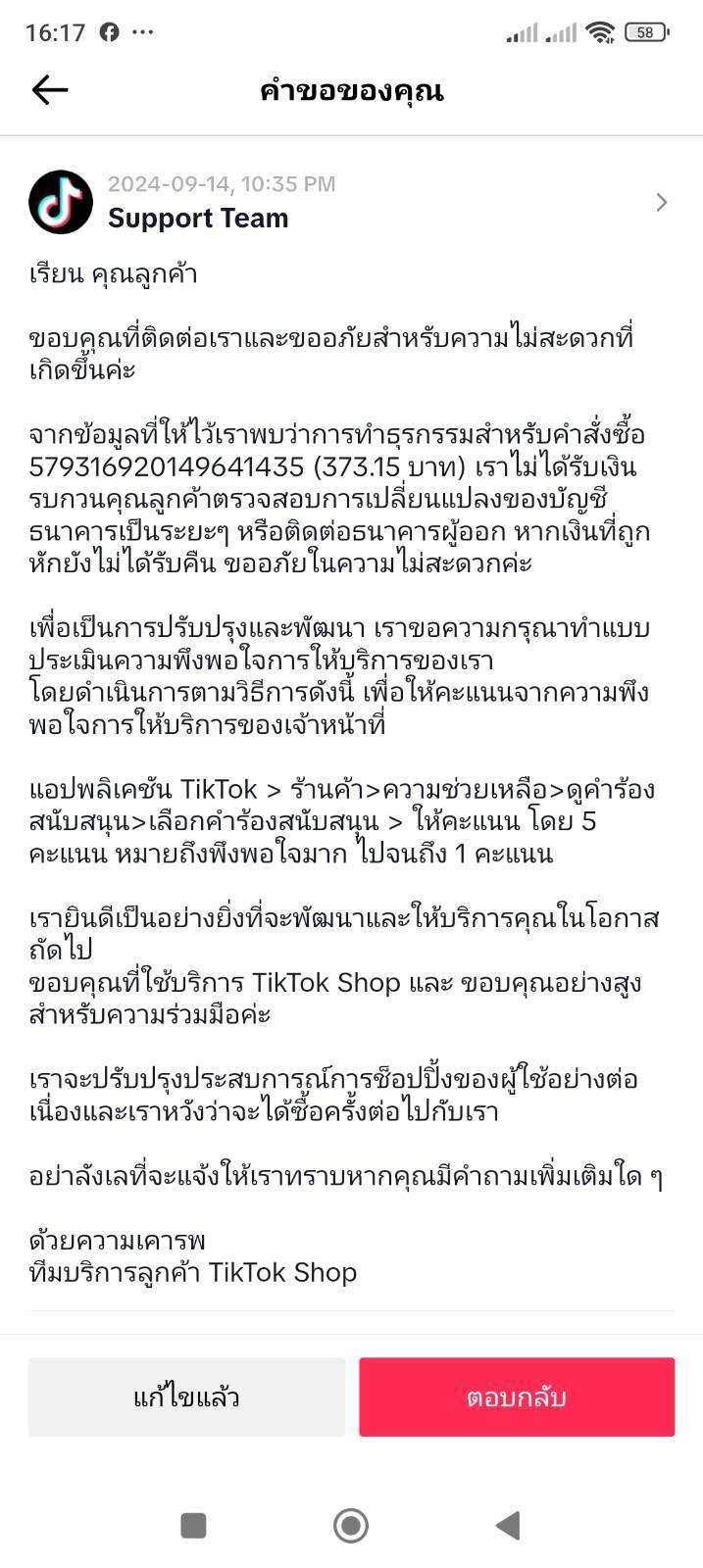 ซื้อสินค้าจากTiktokธนาคารตัดยอดเรียบร้อยแล้ว แต่ทางtiktokไม่ได้รับเงิน