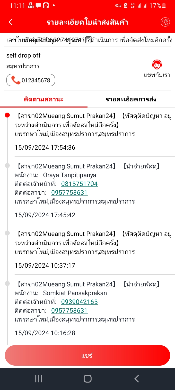 มีใครพอจะรู้เบอร์ติดต่อ j&t สาขาประเวศบ้างมั้ยครับติดต่อไม่ได้เลย แชทถอบถามก็ตัดจบไม่ยอมคุย 864371678376 เลขพัสดุนี้ถ้ามีเจ้าหน้าที่หรือพนักงานรบกวนติดต่อกลับมาด้วยนะครับ