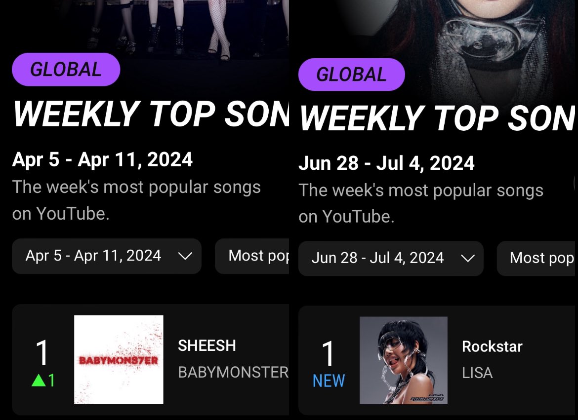 LISA และ BABYMONSTER เป็นเพียง 2 ศิลปินเคป๊อปเท่านั้นที่มีเพลงขึ้นถึงอันดับ 1 บน YouTube Weekly Top Song ในปี 2024