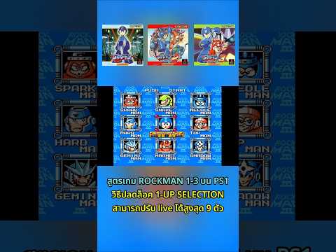วิธีปลดล็อค 1-UP SELECTION ในเกม ROCKMAN 1-3 บน ps1 สามารถปรับ live ได้สูงสุด 9 ตัว