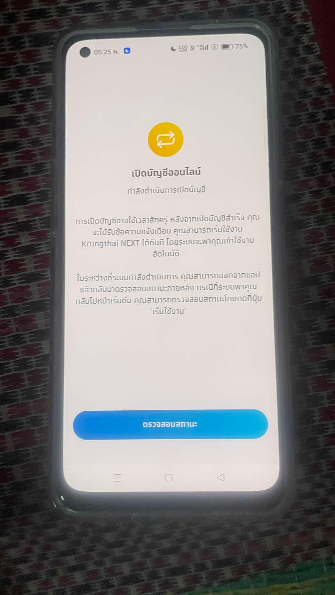 คือเราไปเผลอกดแล้วมันให้เปิดตอนเราเข้าแอปมันไม่มีหน้าให้กรอกบัญชีมันให้ทำแบบออนไลน์ ที่แรกเราไปเปิดบัญชีออนไลน์ในแอปเป๋าตังแล้วเราจะผูกกับธนาคารแล้วไปผูกมันเป็นอีกแบบหนึ่ง เราวันต่อมามันให้ทำแบบออนไลน์คือให้กรอกแล้วขึ้นตามรูปเลย รหัสที่ให้เขาแอปที่จริงเราไม่ได้สร้างมันขึ้นรหัสตามเป๋าตังเลย ตอนแรกเราก็ไปปิดบัญชีในเป๋าตังจนปิดบัญชีแล้ว วันต่อมาเรารอมันก็ขึ้นแบบเดิม คือเราต้องทำยังไงบ้างงับ