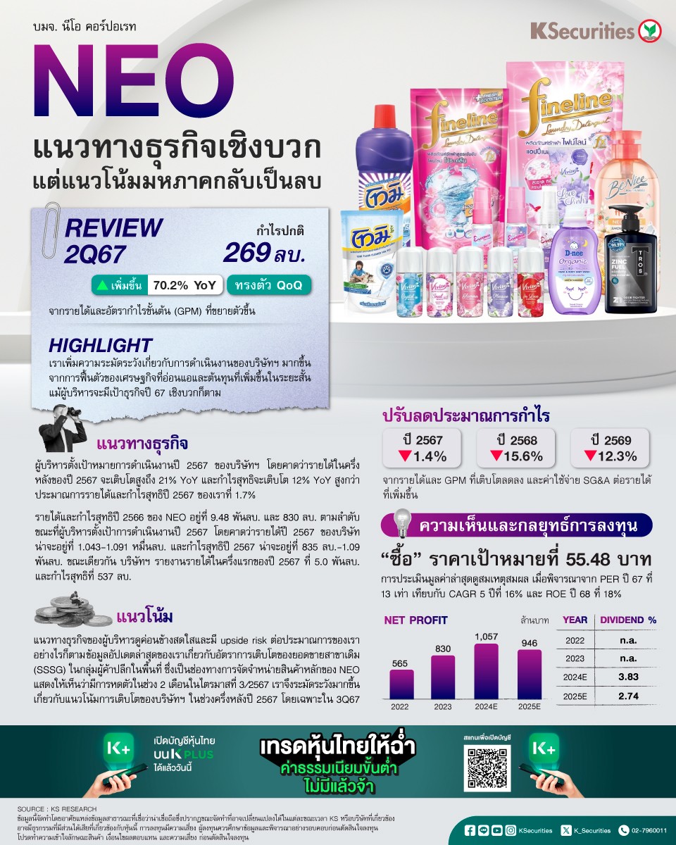 KSEC ปรับลด TP NEO เพราะ แนวโน้มมหภาคเป็นลบ ปรับกำไรลง