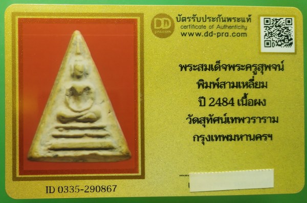 พระสมเด็จพระครูสุพจน์ วัดสุทัศน์ฯ พิมพ์สามเหลี่ยม(พิมพ์หายาก) ปี 2484