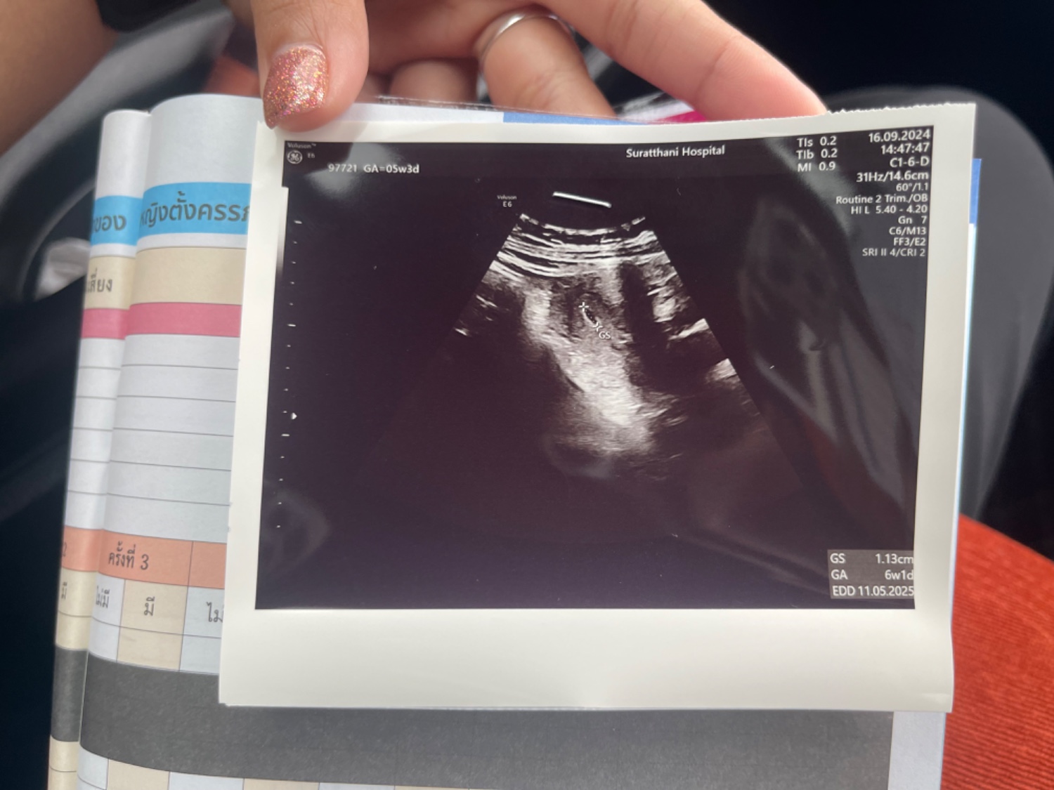 คือเราท้อง แต่ไม่ได้คุยอะไรกับคุณหมอ ไปตรวจครั้งแรกได้ผลซาวด์กลับมาแบบในรูปค่ะ