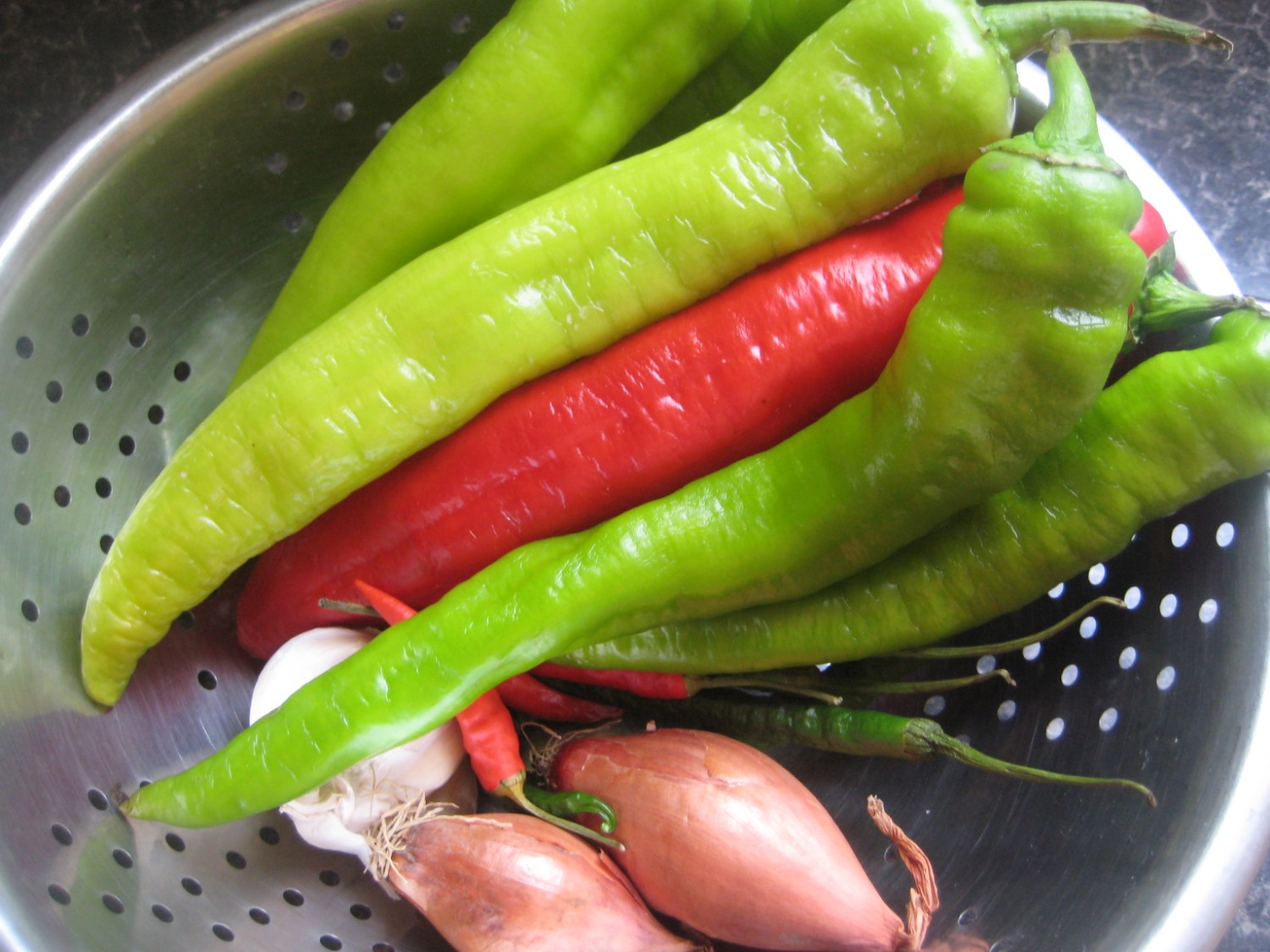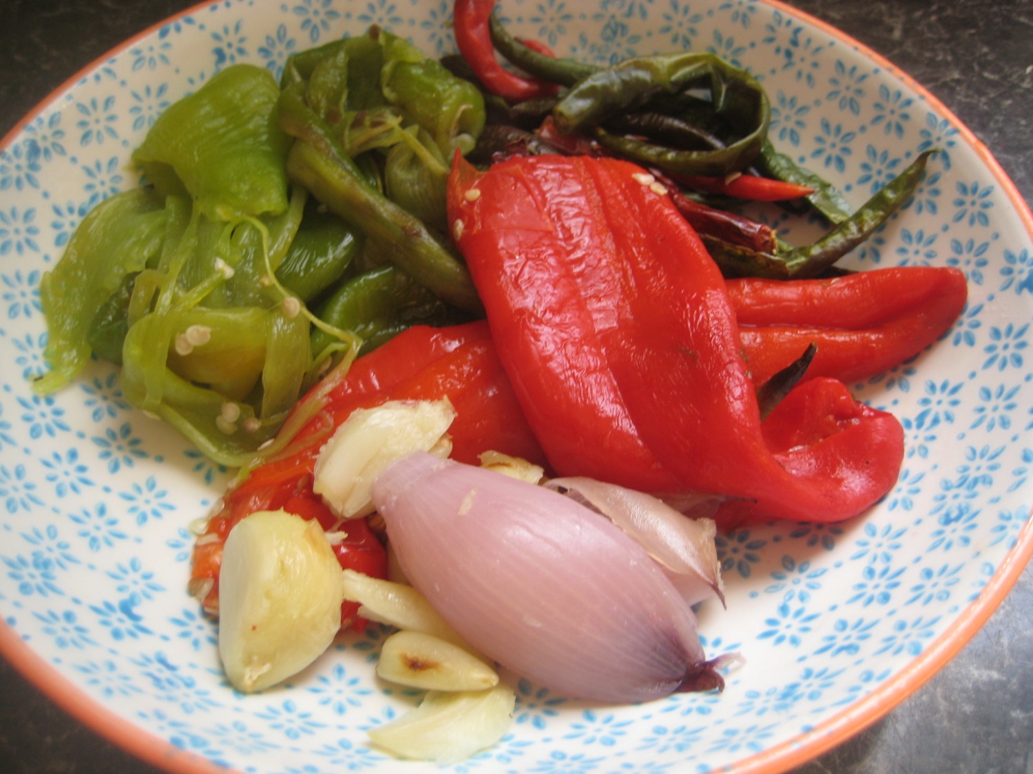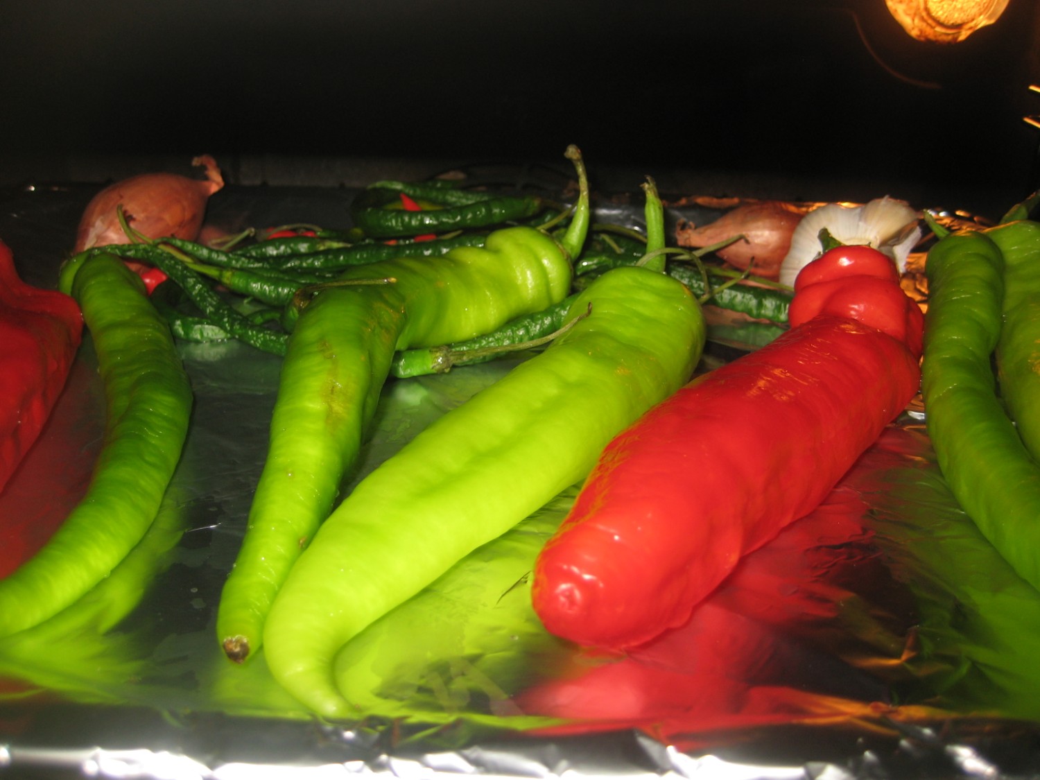 นำพริกหยวก พริกหนุ่ม พริกแดงหวาน พริกจินดาแดง พริกสดเขียว ไปย่างให้ทุกอย่างสุกหอม