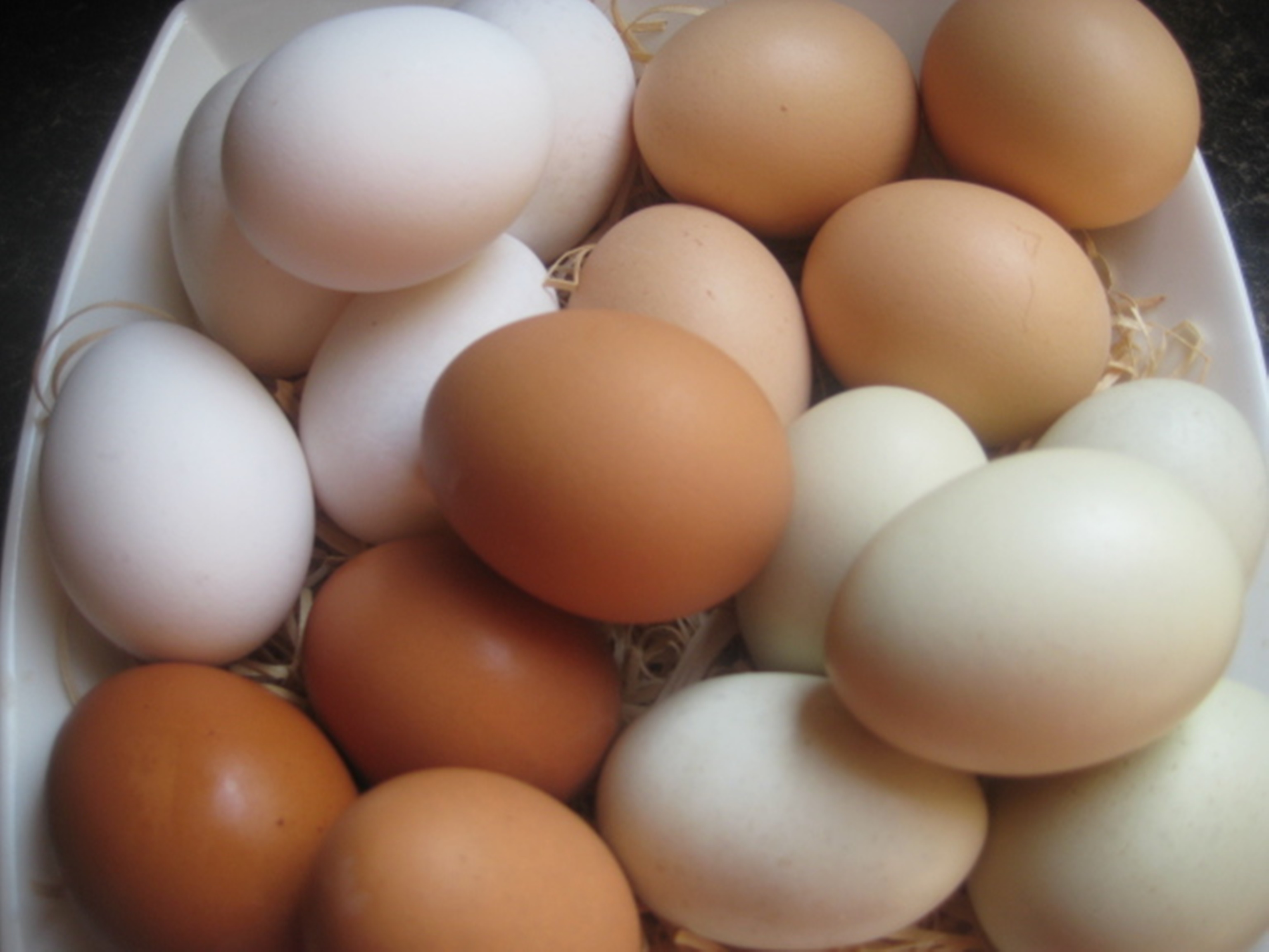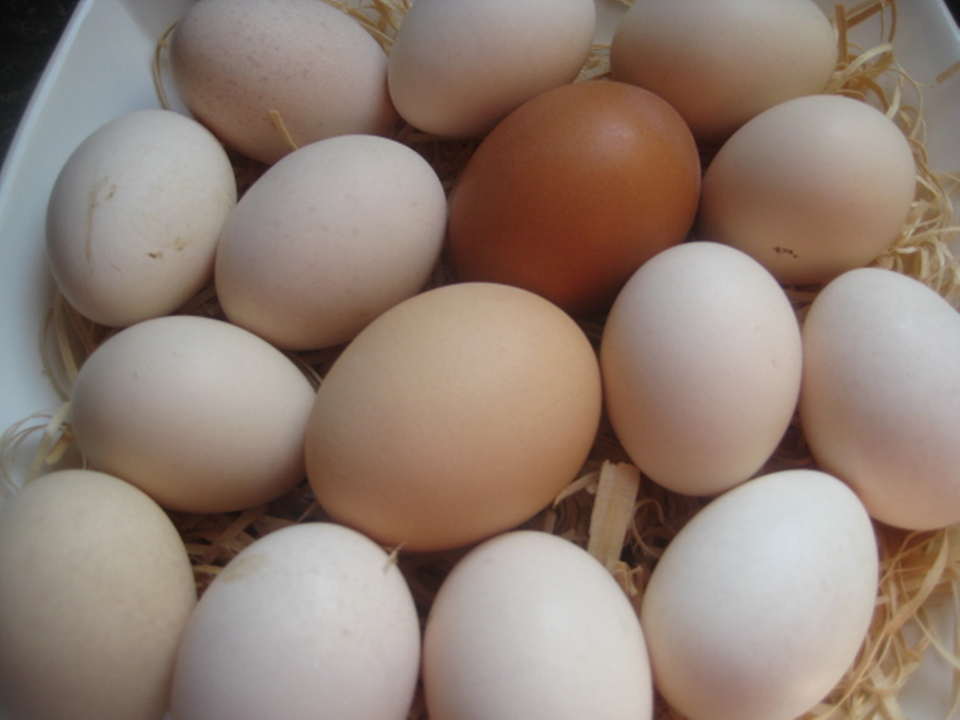 ที่มีเปลือกสีฟ้าและสีเขียว ขนาดของไข่ไก่จะมีขนาดเล็กหรือใหญ่ ก็ขึ้นอยู่กับสายพันธุ์ของไก่แต่ละชนิด