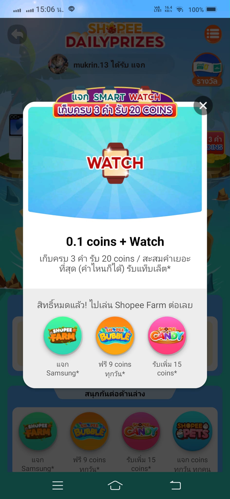 พอเข้าไปดูในหน้าของ shopee prize อีกที มันไม่มีคำว่า watch
