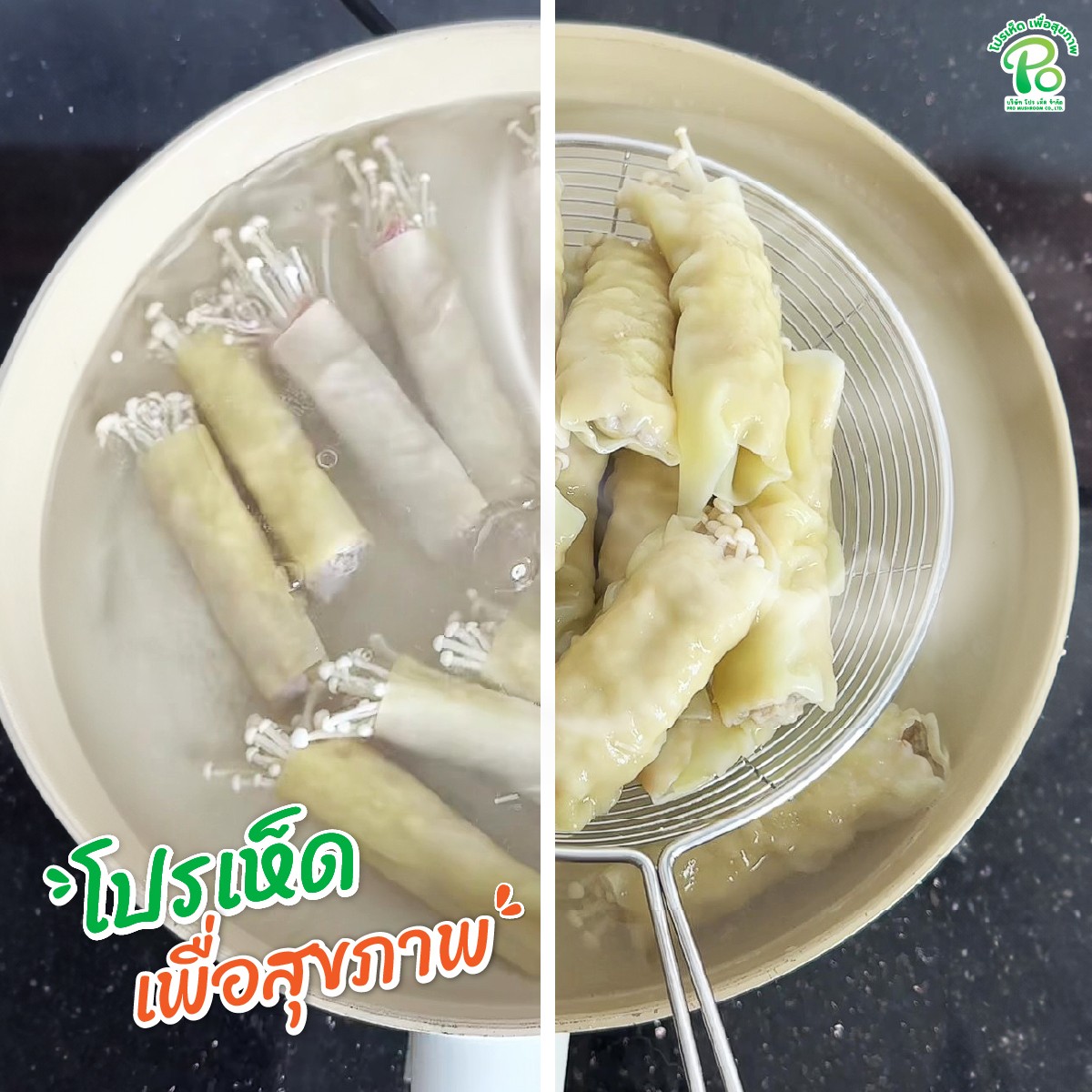 เกี๊ยวหมูเด้งเห็ดเข็มทอง "โปรเห็ด"
