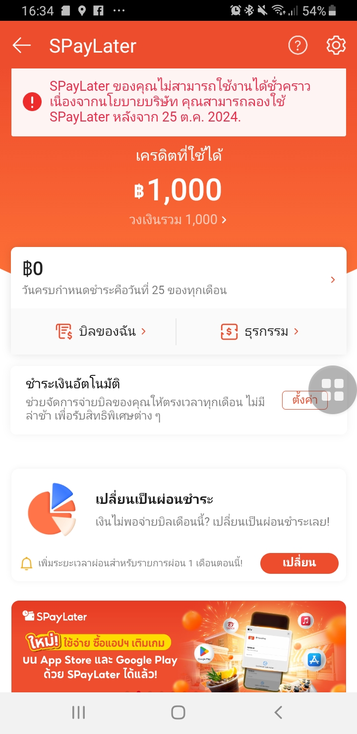 SPayLater ไม่สามารถใช้งานได้ชั่วคราวเกิดจากอะไรครับ