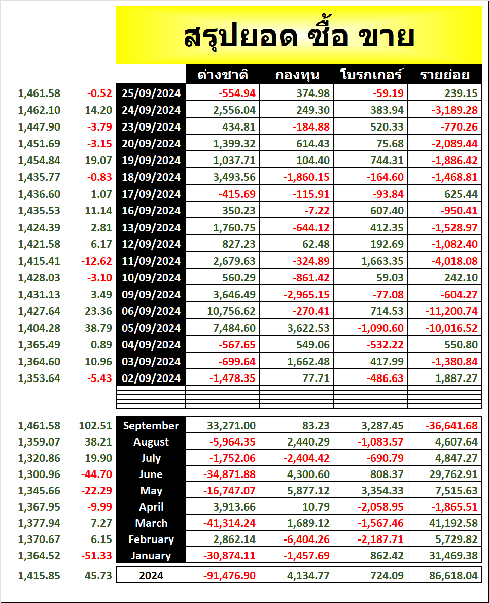 25 ก.ย. 2567 ต่างชาติ กลับมาขาย 🔴 -554.94 ล้าน