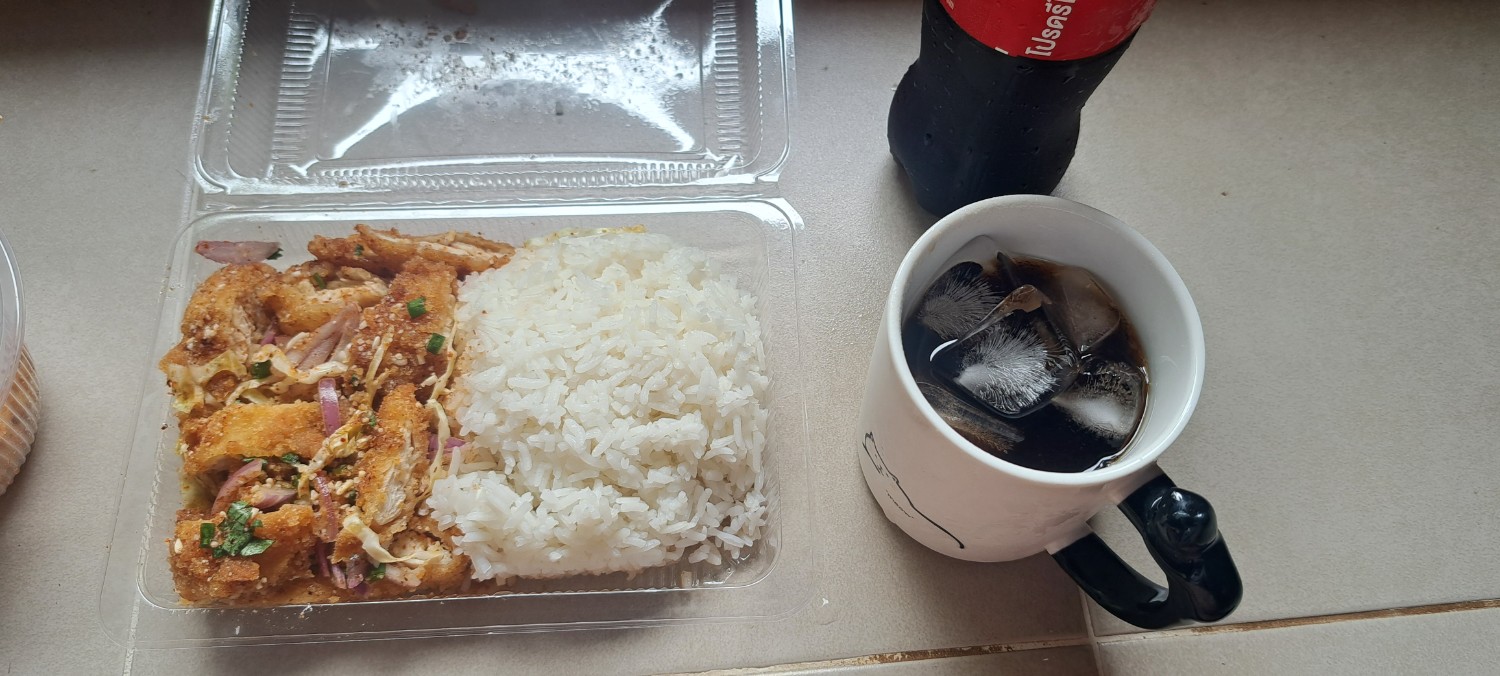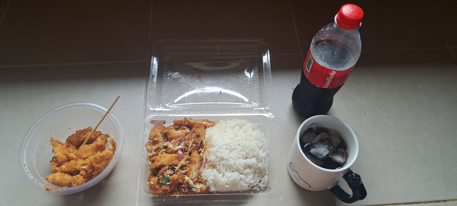 หลังจากกลับจากเรียนมหาวิทยาลัย ตอนกลับก็ได้ซื้อข้าวยำไก่แซ่บ ไก่เขย่ารสวิงค์แซ่บ กับ โค้ก เพิ่มความซ่า