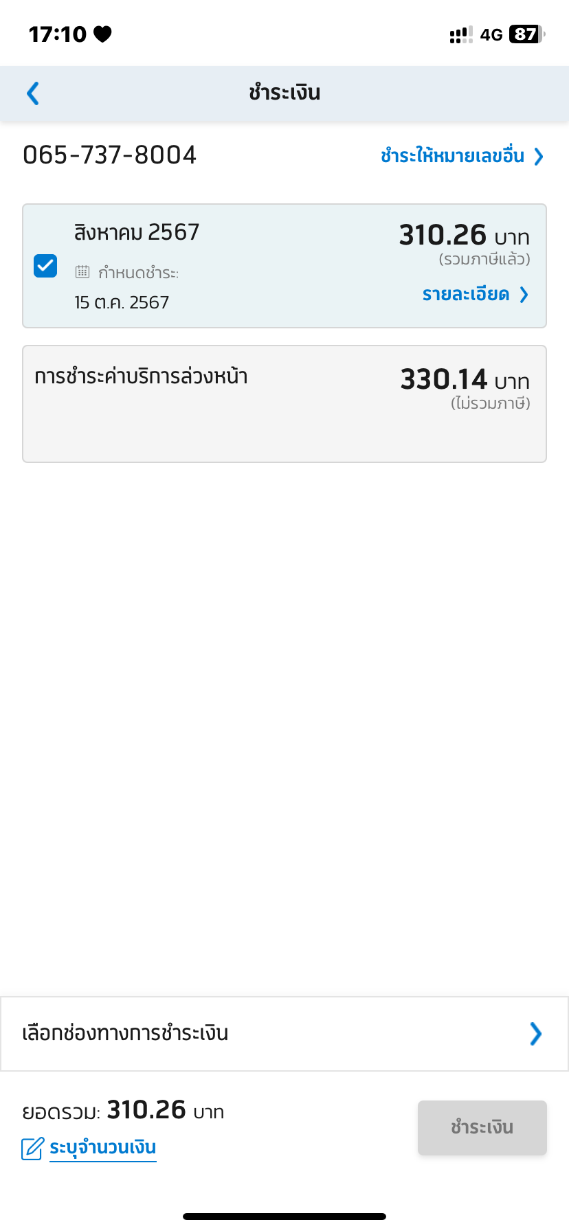 บิลมาวันนี้ 310.26 บาท คำถามคือ ทำไมไม่ตัดยอดออกไปคะ คือจะให้เราจ่ายเพิ่มหรอคะอันนี้ไม่เข้าใจ