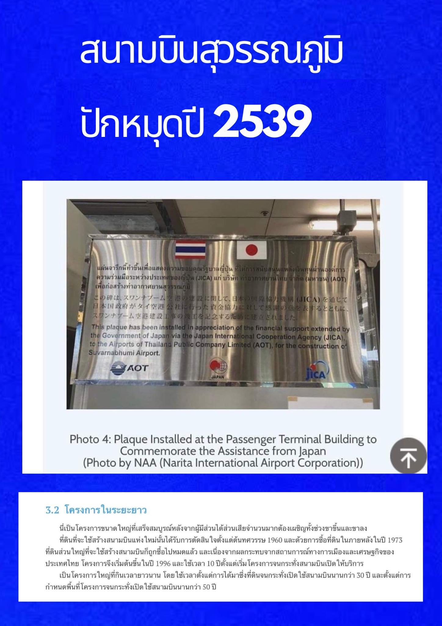 มีหลักฐาน ยืนยัน เขียนโดยหัวหน้าโครงการ สนามบินสุวรรณภูมิ ( วิศวกรชาวญี่ปุ่น 4 คน) ร่วมกันเขียนความทรงจำอย่างละเอียด