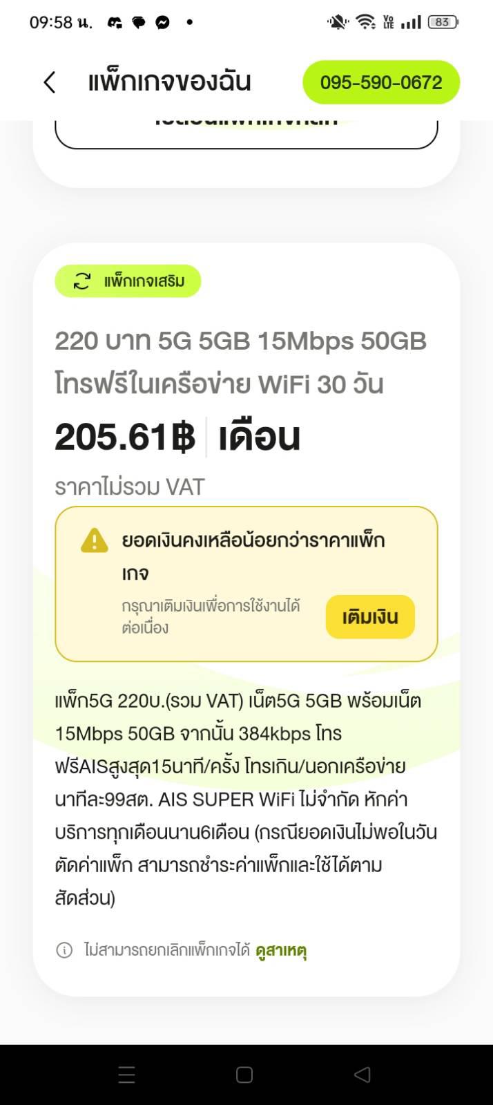 ais ยกเลิกแพ็กเน็ตเสริม ยกเลิกในแอปไม่ได้