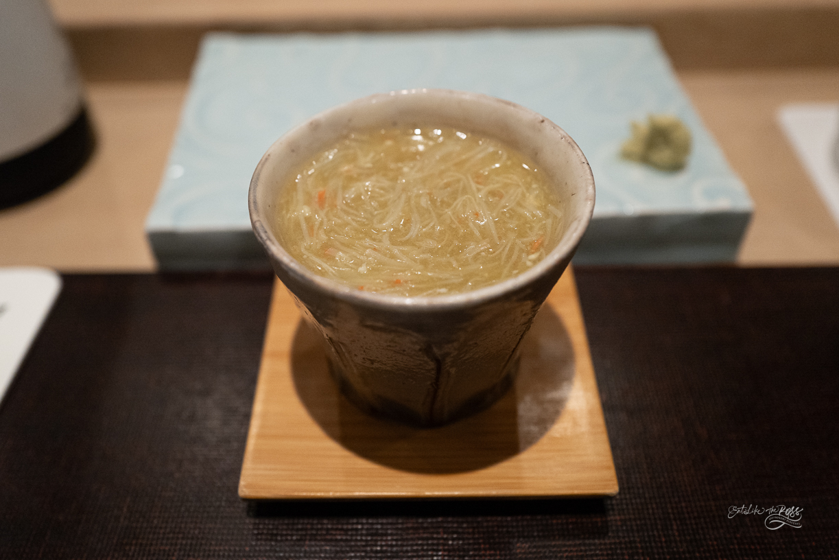 จานนี้ตอนแรกคิดว่าจะมีรสหนักกว่านี้ครับแต่รสมันเบาเลยสามารถรับประทานได้อย่างง่ายๆครับรถมันปูอ่อนๆผสมผสานกับดาชิเป็นน้ำราดด้านบน ไข่ตุ๋นเนื้อนุ่มเบากลิ่นไข่ไม่แรงมากเน้น Texture และรสชาติของหอยนางรม สิ่งที่ประทับใจในชามนี้คือเชฟทำไข่ไม่สุกเกินไปค่อนข้างวอเตอร์รี่จนไม่กลบ Texture ของหอย ความหวานฉุนของวาซาบิที่ปิดท้ายนั่นทิ้ง After Test ความหวานไว้ในปากเป็นจานที่ดีมากครับ อร่อย