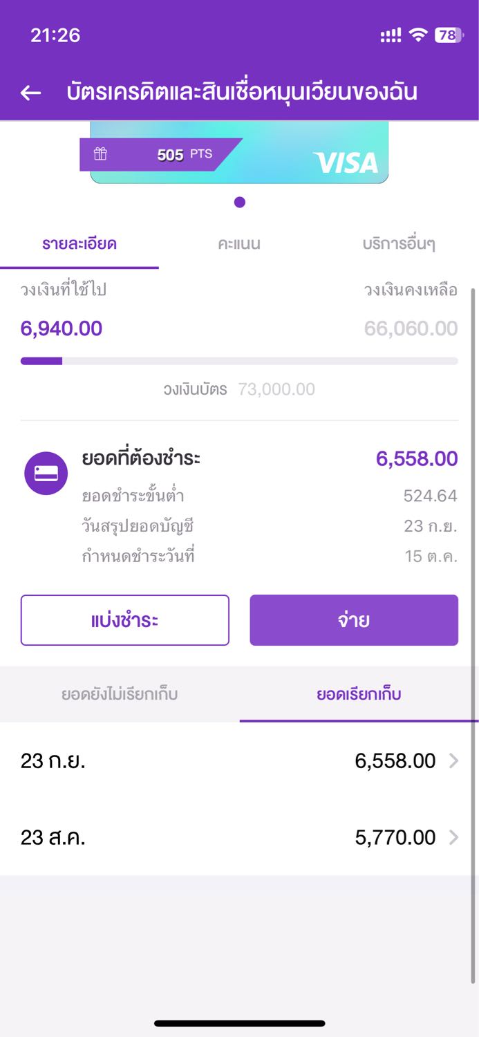 แต่ถ้าไปจ่ายจากเมนูบัตรเครดิต ที่ไม่ต้องกรอกข้อมูลใดๆทั้งสิ้น สะดวกกว่ามาก แต่ดันไม่มีให้ตั้งเวลาจ่ายล่วงหน้าซะงั้น ต้องจ่ายทันทีตามรูป
