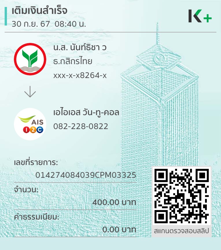 ขอแจ้งเติมเงินผิดเบอร์ผ่าน K PLUS ค่ะ